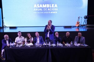 Durante la actividad, previo a la votación de los afiliados, el presidente de ACIERA, Christian Hooft, compartió unas palabras con el auditorio a modo de balance, y expresó “Quería decirles que para mí fue un alto honor y un enorme privilegio servir al Cuerpo de Cristo y junto al Consejo Directivo en este gran desafío. Decirles que cuando me tocó asumir, luego de la pandemia, hace cuatro años atrás, estábamos saliendo… Fue un momento muy desafiante, porque todos sufrimos la partida de nuestro querido Rubén Proietti. Rubén, un hombre que ha sido alguien que ha marcado tremendamente esta institución, fue presidente por casi 20 años en diferentes oportunidades, pero tomar ese lugar, para mí, irreemplazable, era un gran desafío. Sigue siendo un gran desafío hasta el día de hoy, porque no hay gran hombre como Rubén Proieti, ¿no? Ustedes ya lo saben. Y bueno, acá estamos, hermanos. Por la gracia de Dios, infinita gracia de Dios, Rubén fue quien me enseñó, trabajando muchos años al lado de él, a reconocer la variedad y diversidad del Cuerpo de Cristo. Me enseñó que las iglesias grandes y las iglesias pequeñas eran importantes igualmente. Las denominaciones grandes y pequeñas también. Todas son valiosas en igual manera para el Señor, para el Cuerpo de Cristo, aunque tengan diferentes responsabilidades y funciones, pero todas son importantes.”